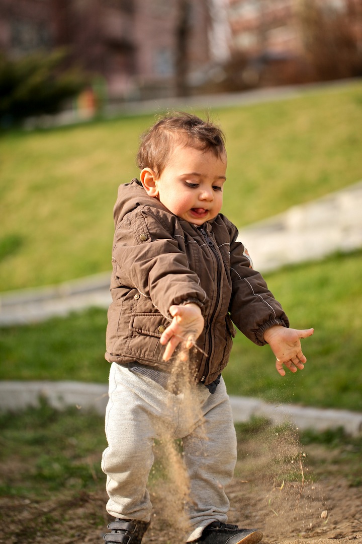 ‘At at at’ diyerek kumları büyük bir zevkle etrafa saçan Baybars.
