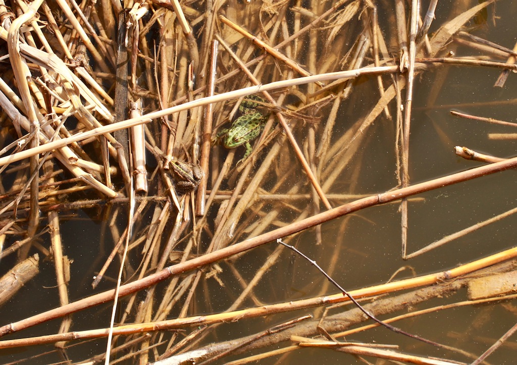 Sazlıkların arasında bir sürü irili ufaklı kurbağa vardı. Kurbağalar daha çok ilgisini çekti diyebiliriz. Fotoğrafı çekerken sadece yeşil kurbağayı görmüştüm. Hemen sol çaprazındaki kahverengi kurbağı sonradan fotoğrafları incelerken gördüm :).
