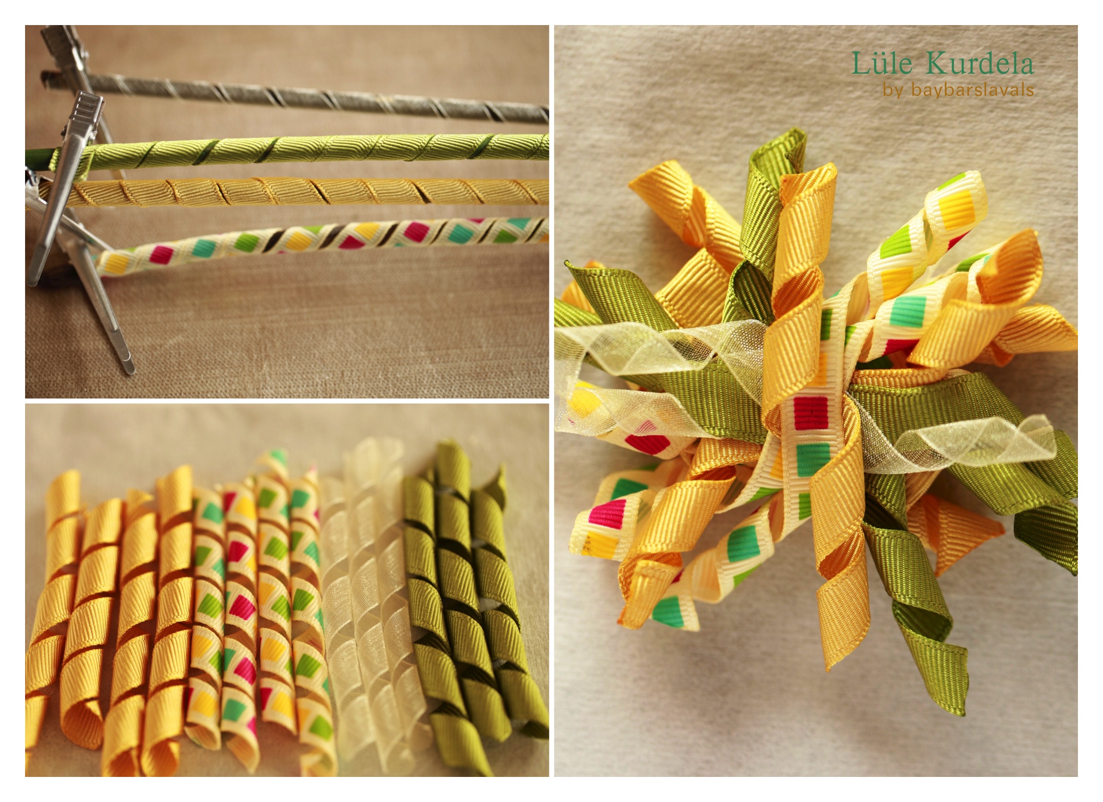Toka yapmaya başladığımda en çok hoşuma giden butik toka çeşitlerinden biri de korker yani lüle kurdelayla yapılan tokalar oldu. Küçük kızların saçında pek şirin duruyorlar. Lüle kurdelanın yapımıysa çok basit sadece kurdelaları sarmak için tahta veya demir çubuklar gerekiyor. Yine nasıl yapılacağına dair internette birçok kaynak bulabilirsiniz. Ben Glory’nin blogunda anlattığı gibi yaptım.