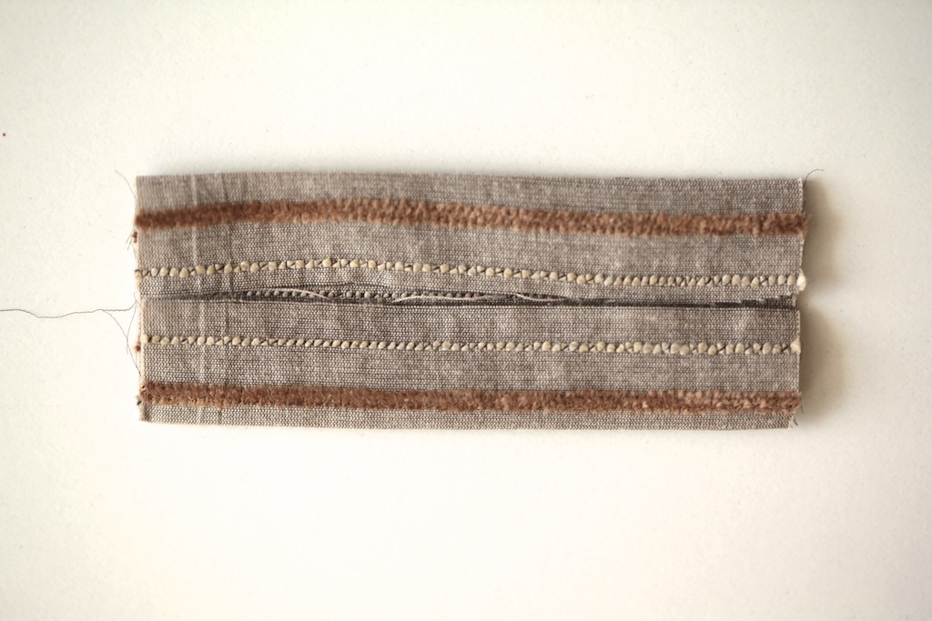 - Biye parçasının iki uzun ucunu birer santimden içeri katlayın ve ütüleyin.