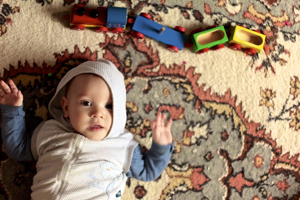 Sancak 7 aylık olduğu günden itibaren oyuncak aşkına sürünmeye başladı. Üç haftadır kollarıyla tüm vücudunu çekerek komando misali gözüne kestirdiği hedefe doğru ilerliyor. Fakat hala oturma pozisyonundan sürünme pozisyonuna geçmeyi başaramadı. Bu minvaldeki çalışmaları henüz ya yüzüstü kapaklanarak veyahut bacaklarının biçimsizce sıkışması acısıyla son buluyor.